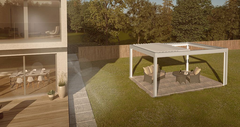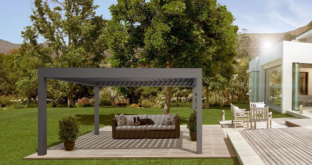 Zudem lassen sich die Lamellen und Stützpfeiler farblich nach Ihren Wünschen gestalten, so dass sich Ihr neuer, geschützter Lieblingsplatz im Freien optisch perfekt eingliedert.